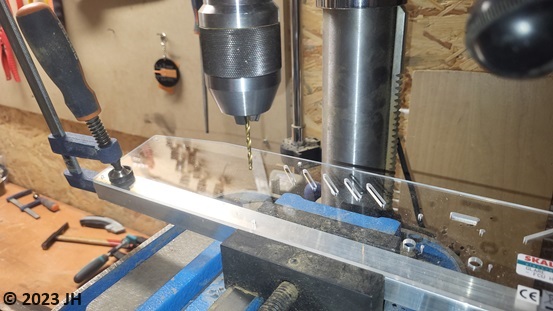 Nous fixons une cornière en alu à l'aide de deux serres-joints, et percons la cornière par les trous de la plaque.