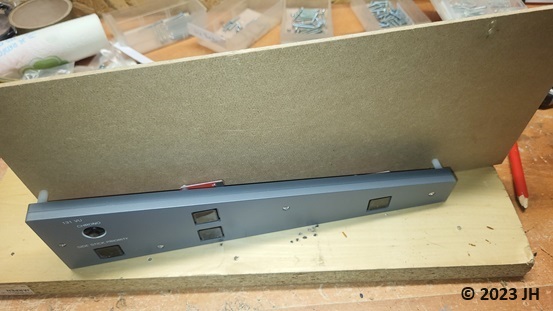 Pour les wings, comme il n'y a pas de plaque de plexi, je fais un gabarit dans une planche de 3 mm, afin de bien repérer l'emplacement des vis.